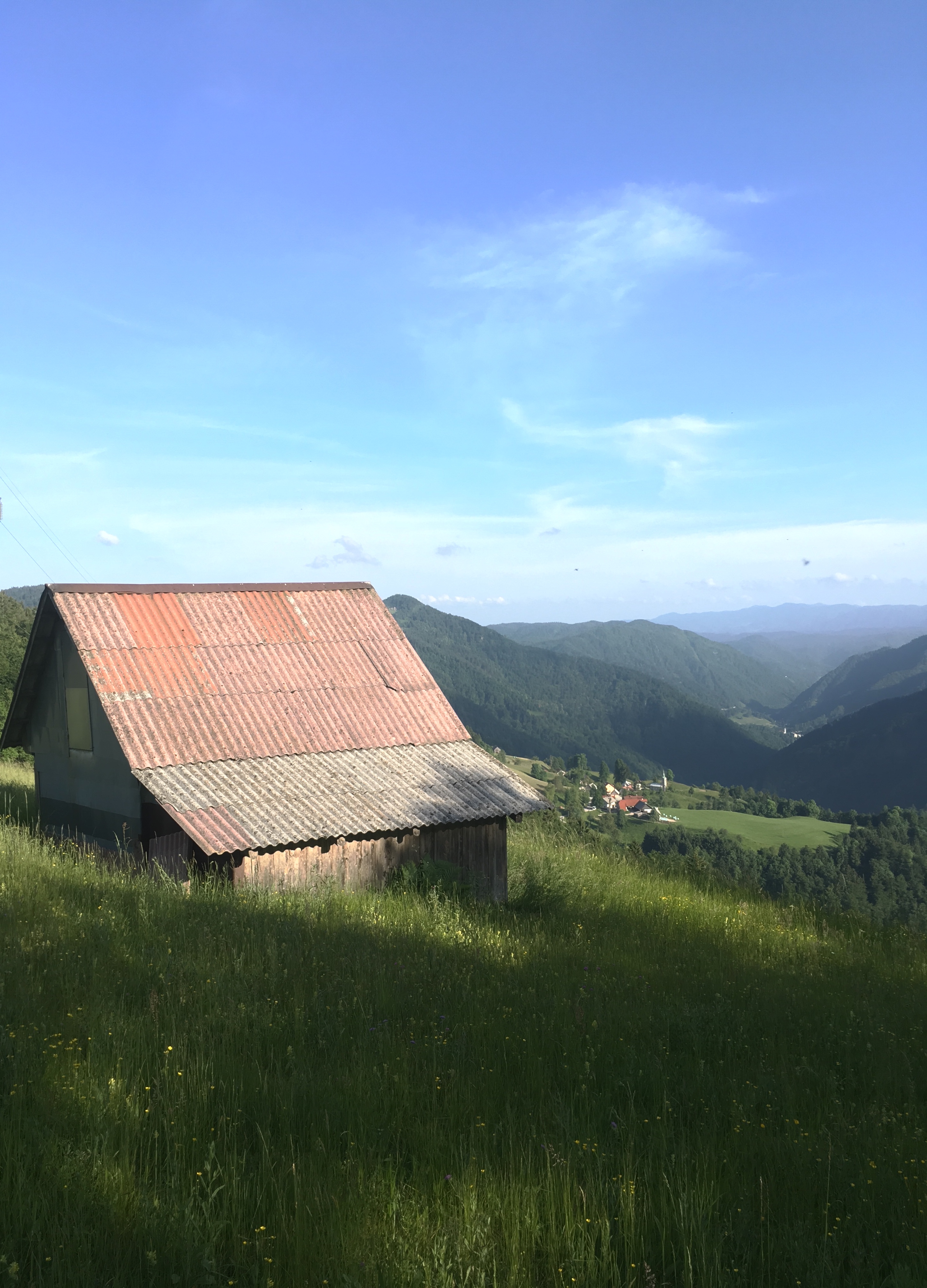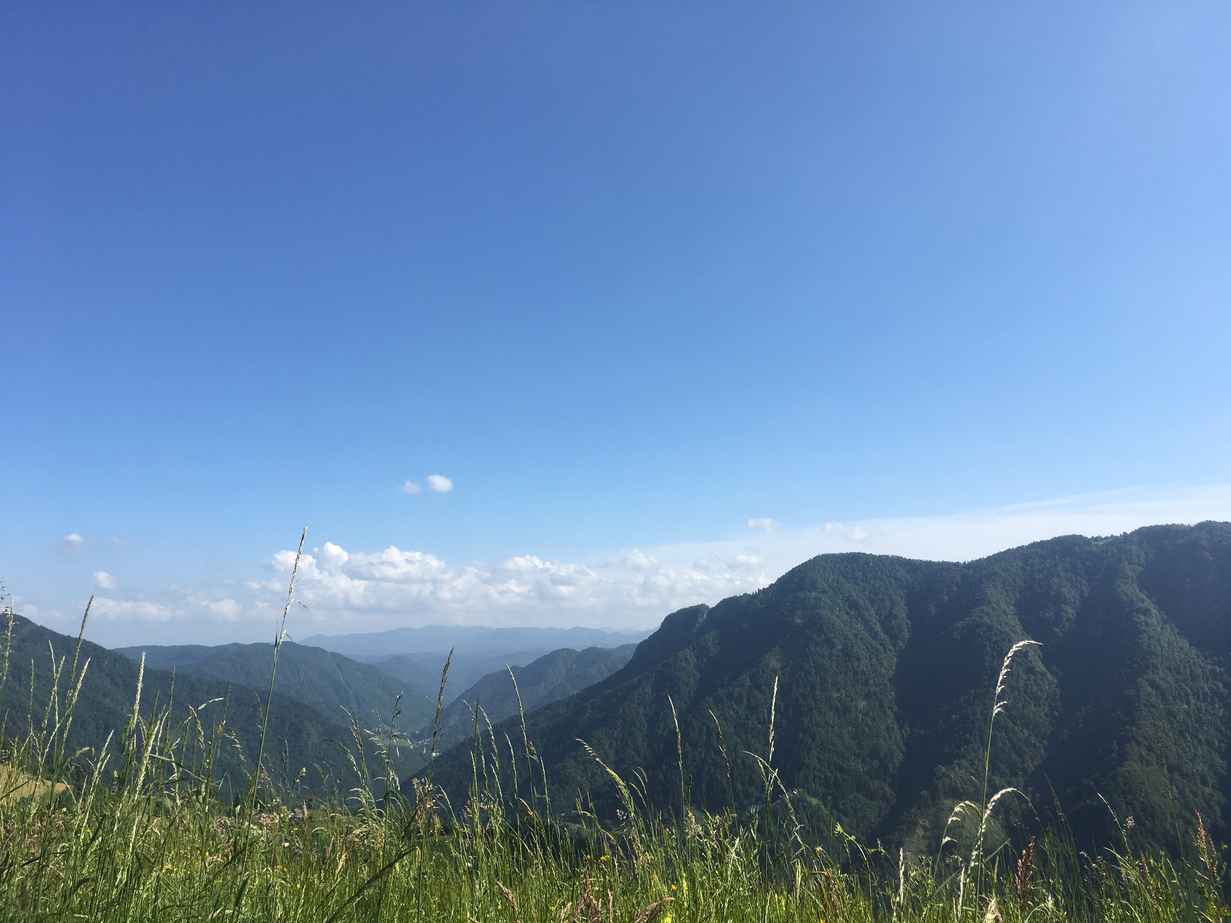 Von Etappe 7 habe ich heute 16km geschafft und befinde mich jetzt kurz unterhalb des Bevkov-Gipfels. Insgesamt war ich heute 23km unterwegs, Höhenmeter kann ich nicht genau sagen, ich denke um die tausend. Die Landschaft erinnert stark an das Allgäu, ist ja im Prinzip auch Alpenvorland.