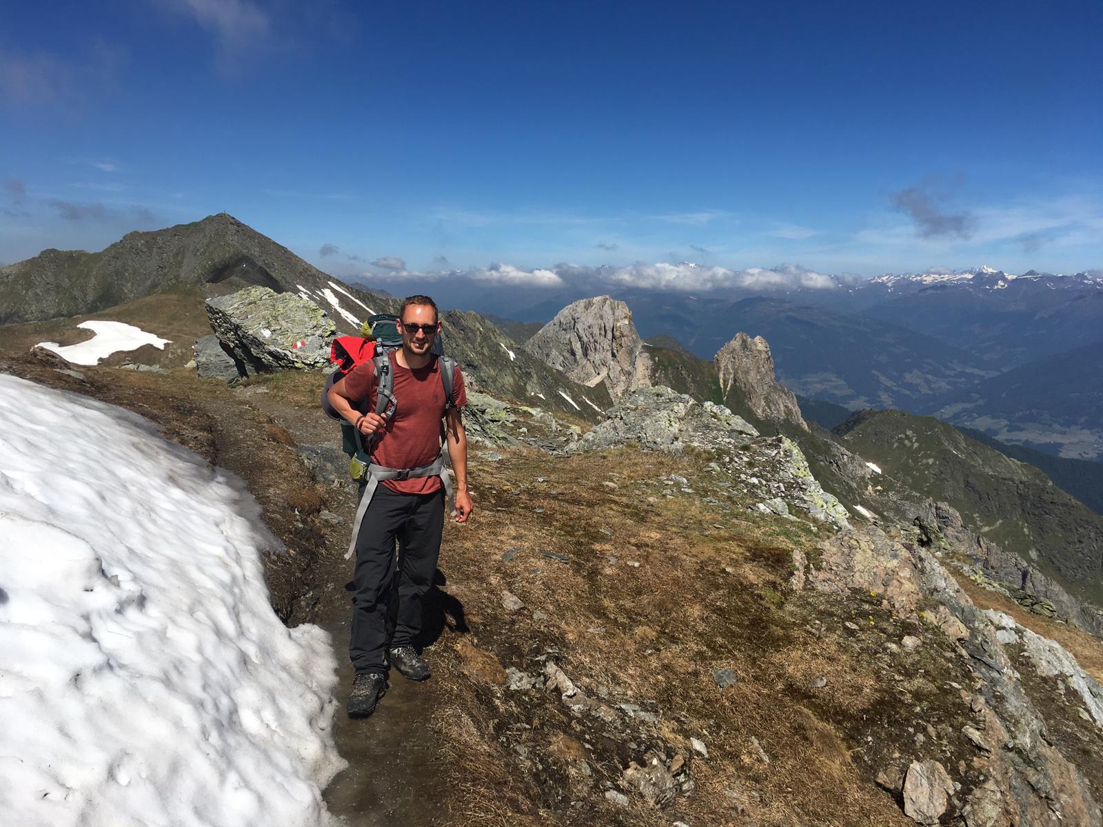 Die heutige Etappe von der Porzehütte zur Obstanserseehütte war ich dann wieder solo unterwegs, da die Anderen noch einen Tag länger auf der Porzehütte bleiben (Heidi hat zum Abschied noch eine Runde Zirbenschnaps ausgegeben). Es ist eine etwas kürzere Etappe und es gibt keinen Grund zur Eile. In den letzten Tagen/Wochen ist es mir noch schwer gefallen, nicht zu hetzen und bei Ankunft an der Hütte nicht noch weiter gehen zu wollen, da ja noch Zeit ist. Heute schaffe ich es bewusst, den Moment zu genießen. Ich mache immer wieder Pausen, genieße die Sonne sowie die Ruhe und lasse meinen Blick über die gewaltigen Bergketten schweifen. An der Hütte angekommen überlege ich kurz, ob ich weitergehe, es ist erst 13 Uhr. Die Umgebung ist jedoch unfassbar schön und der Obstanser See vor der Haustür überredet mich schließlich zum Bleiben.