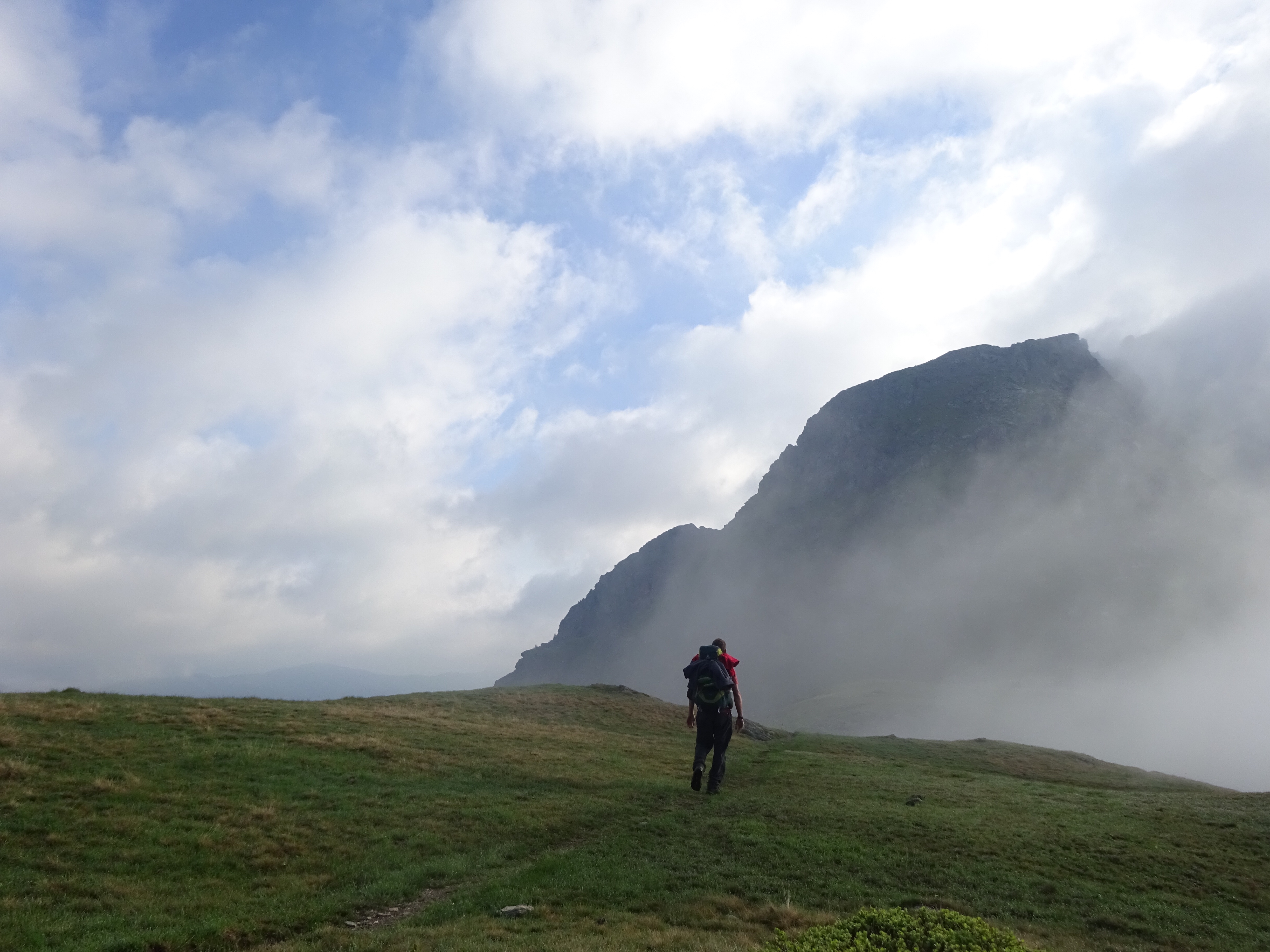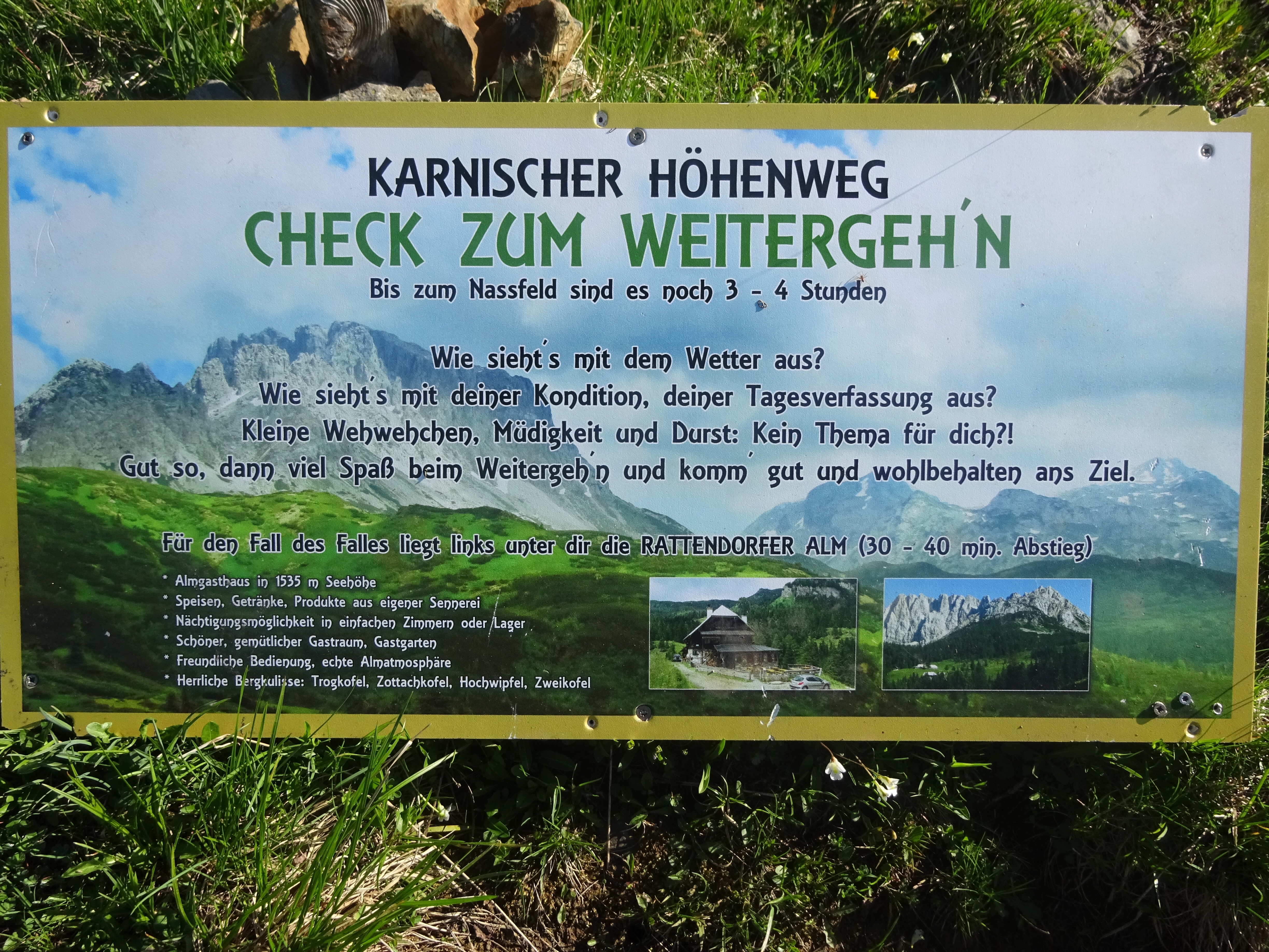 Seit dem Karnischen Höhenweg begegnen mir von Tag zu Tag mehr Leute und es kommt zu vielen schönen Begegnungen und Gesprächen: ich treffe auf zwei Sachsen (die jetzt in Karlsruhe wohnen), die zwei schon erwähnten Österreicher (die in das Unwetter gekommen sind), auf Didi (der auch einen eigenen Blog hat und von Wien nach Nizza laufen möchte) und auch sonst gibt es viele Tagesausflügler, die sich nach meiner Reise erkundigen und interessiert nachfragen. Auf der Wolayerseehütte lerne ich Roman kennen, der auch gerade in meine Richtung unterwegs ist. Beim Abendessen kommen dann noch Heidi, Dani und Andrea hinzu. Auch wenn wir während der Tagesetappen nicht das gleiche Tempo haben, so sitzen wir spätestens abends wieder in geselliger Runde zusammen und tauschen uns über den Tag und sonstige Dinge aus. Und es tut gut, für ein paar Tage eine feste Gruppe um sich zu haben, auch wenn ich weiß, dass sich unsere Wege bald wieder trennen.