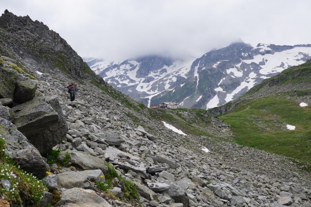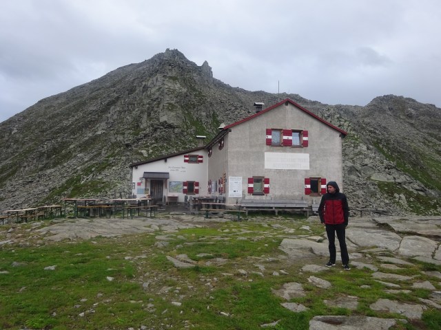 Dieser bleibt zum Glück aus, dafür erreichen wir kurze Zeit später gegen 17 Uhr die Chemnitzer Hütte auf 2420m, passend dazu lässt sich die Sonne für einen Moment blicken.