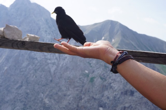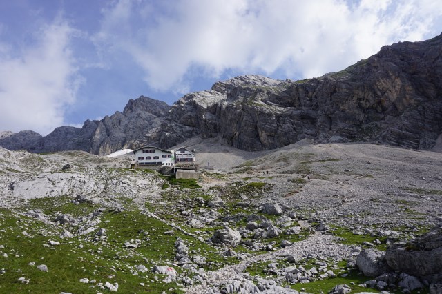 Die Hitzewelle hat auch vor den Alpen nicht halt gemacht und beschert uns sonniges aber auch sehr warmes Wetter. Trotzdem kommen wir am Montag recht schnell voran und sind in ca. 1:20h zur Knorrhütte hinauf gesprintet (das Schild veranschlagt hierfür 2:30h). Unterwegs haben wir etliche Wanderer überholt, die früher gestartet sind. Die meisten von Ihnen haben als Ziel die Zugspitze, daher ist der Weg so viel belaufen. Ab der Knorrhütte schlagen wir einen anderen Weg ein und sind unterwegs zum Gatterl, was uns zurück auf österreichischen Boden bringt.