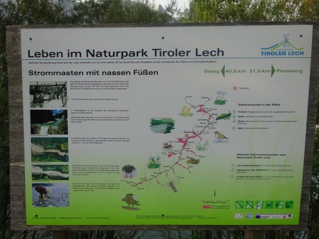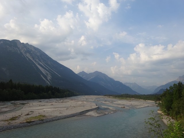 Wir wandern heute zunächst durchs Lechtal und kommen recht gut voran, da die Strecke relativ eben ist. Zudem ist der Fluss Lech sehr schön anzusehen, da er noch naturbelassen und nicht begradigt ist (zumindest jetzt nicht mehr). Nur die Bremsen machen uns heute zu schaffen und lassen uns keine Ruhe: in Scharen fliegen sie andauernd um uns herum und versuchen, uns zu stechen. Da mein Körper auf deren Stiche recht heftig reagiert, bin ich nicht gerade scharf darauf, zerstochen zu werden. Daher geht schon einige Energie dafür drauf, die Plagegeister mit den Armen wedelnd zu vertreiben.
