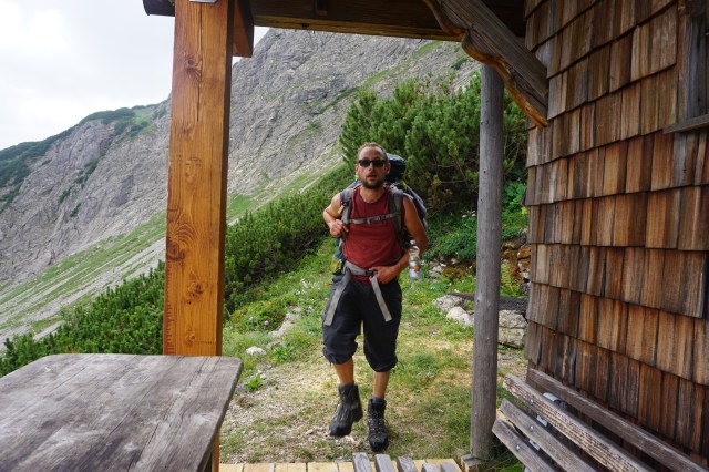 An der Bockkarscharte sehen wir dann schon die Hütte und uns trennen nur noch 45 Minuten davon. Der Weg bergab ist sehr matschig und wir müssen aufpassen, dass wir nicht ausrutschen. Zu unserem Glück zieht zumindest das Gewitter von uns weg und wir kommen zwar nass aber immerhin unversehrt am Prinz-Luitpold-Haus an, insgesamt waren wir 11 Stunden unterwegs. Die Hütte gleicht eher einem Hotel, insgesamt haben hier 168 Leute Platz. Und wo man auch hinschaut, überall wuseln Menschen herum. Der Essensraum ist riesig und erinnert von der Atmosphäre her eher an das Hofbräuhaus: die Stimmung ist ausgelassen und ich habe das Gefühl, jeder muss seinen Tischnachbarn von der Lautstärke her übertönen. Aber heute ist mir das egal, ich bin froh, angekommen zu sein und diese Monster-Etappe bewältigt zu haben. Martin geht es da nicht anders.