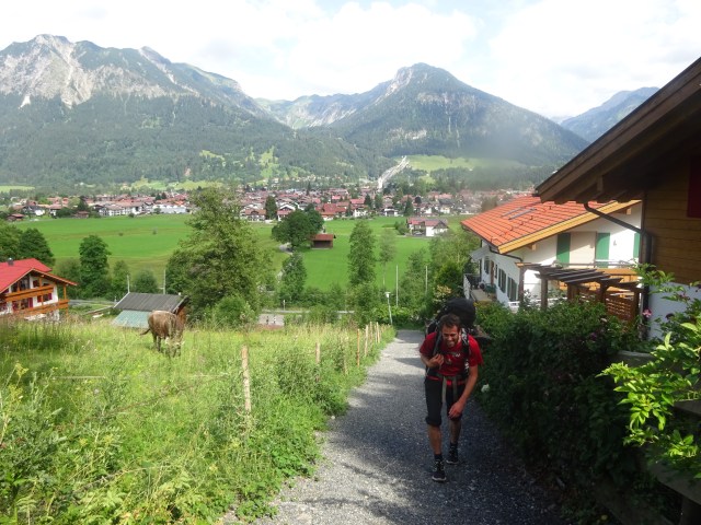 Und nach einer weiteren halben Stunde treten wir aus dem Wald heraus und befinden uns plötzlich in Oberstdorf! Ich kann es zu diesem Zeitpunkt noch nicht recht begreifen, dass wir am Ziel sind, es fühlt sich noch so unwirklich an. Morgen wird kein Rucksack mehr gepackt und gesattelt, werden keine Schuhe geschnürt, kein Routenverlauf studiert und die Höhenmeter ausgerechnet. Ab morgen gibt es kein Porridge mehr zum Frühstück sondern stattdessen Kaffee und Brötchen im Hostel, in dem wir nun noch für zwei Tage ausspannen, bevor sich unsere Wege wieder trennen und Martin zurück in die Heimat fährt. Ich werde indes noch ca. weitere zwei Wochen mit Onkel, Tante und Cousin im Allgäu verbringen und kann mich mal ganz entspannt ohne schweres Gepäck bewegen. Mein Rücken kann aufatmen.