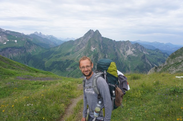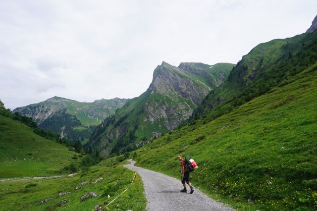 Die letzte Etappe dieser Tour verläuft im Vergleich zu gestern recht unspektakulär. Mit dem Überqueren der Bockkarscharte befinden wir uns seit gestern nun wieder in Deutschland und im wunderschönen Allgäu. Wir starten am Morgen gemeinsam mit Miri, die noch eine Weile den gleichen Weg hat, bevor sie in Richtung Edmund-Probst-Haus abbiegt. Miri studiert übrigens Forstingenieuerwesen in Bayern und kennt sich ziemlich gut mit den ganzen Pflanzen- und Blumennamen aus. Wir bekommen dadurch noch mal einen ganz anderen Blick auf die Umgebung und nehmen Sachen wahr, für die wir vorher kein Auge hatten. Miri hat außerdem von Kindheit an fast jedes Jahr mit ihren Eltern den Urlaub im Allgäu verbracht und kann fast jeden Gipfel, jedes Tal etc. benennen – beeindruckend!
