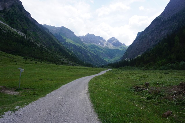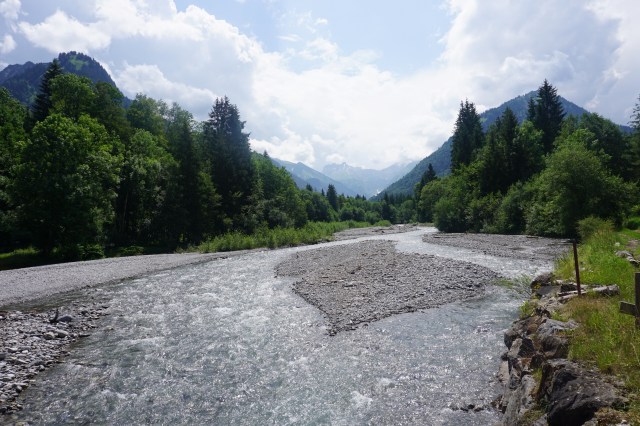 Durch das Oytal läuft es sich dann angenehm leicht und die Tagestouristen tummeln sich zunehmend um uns. Vom Oybach wechseln wir schließlich zur Trettach, wo sich uns der gelbe Weg der Via Alpina anschließt. Am Ende kommt eben alles zusammen.