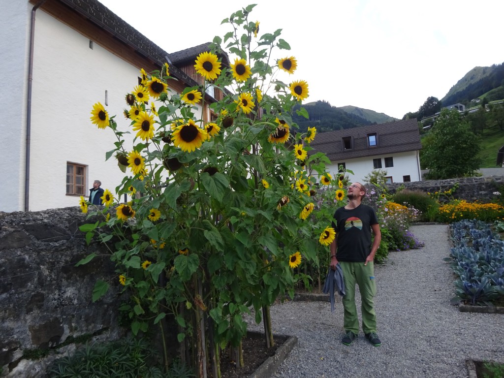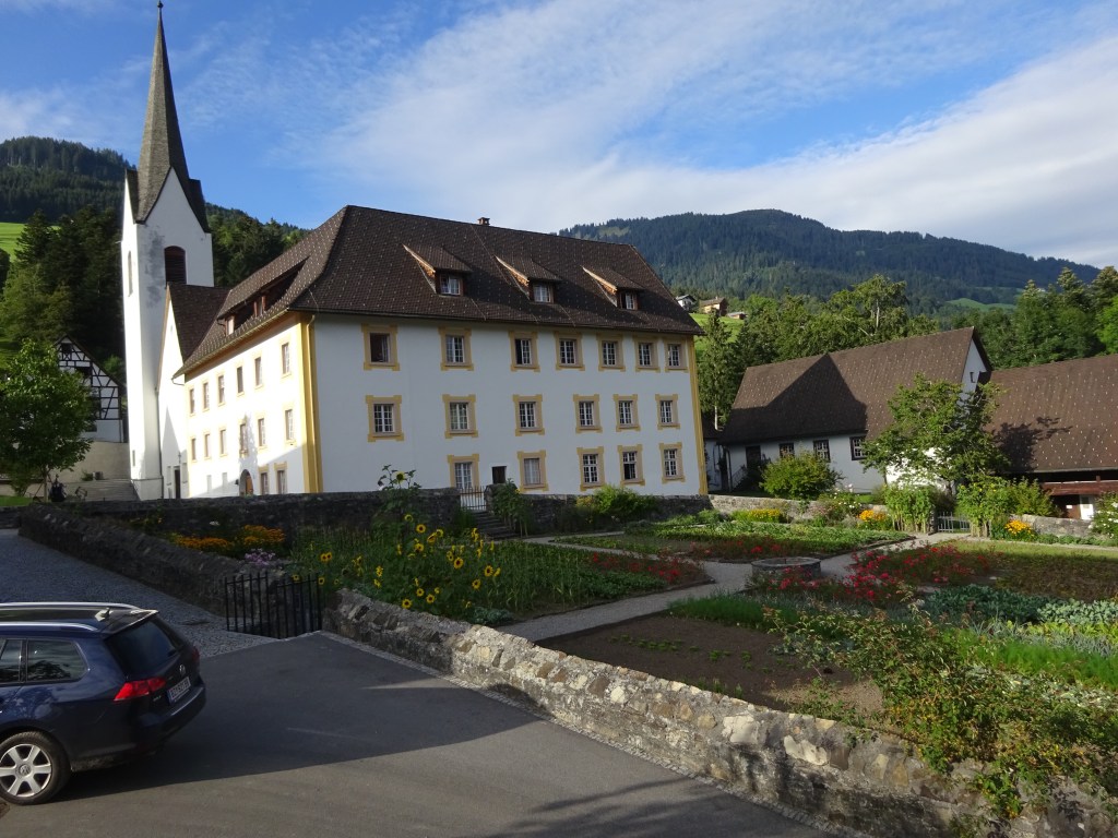 Heute nächtigen wir in einer idyllischen Klosteranlage, die auch heute noch von Benediktinern bewohnt ist. Zu den Einnahmequellen zählen heutzutage außerdem Kulturveranstaltungen, es gibt moderne Seminarräume und es werden eben einfache, aber schöne Zimmer im Klostergebäude vermietet. Es gibt sogar eine Sauna, die wir dann auch sogleich nutzen und anschließend vom Liegestuhl aus den Blick auf die Berge genießen. Nach dem Abendessen haben wir dann noch genügend Zeit, die Klosteranlage zu erkunden, also z.B. die Kirche, den Klostergarten und die Kapelle. Ergänzt wird die Idylle an diesem Ort durch den regelmäßigen Gong der Kirchenglocke. Dies alles entlohnt voll und ganz für die Anstrengung des Tages und die wieder recht lange Etappe.