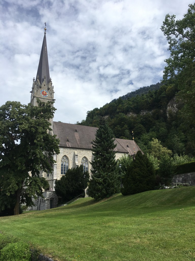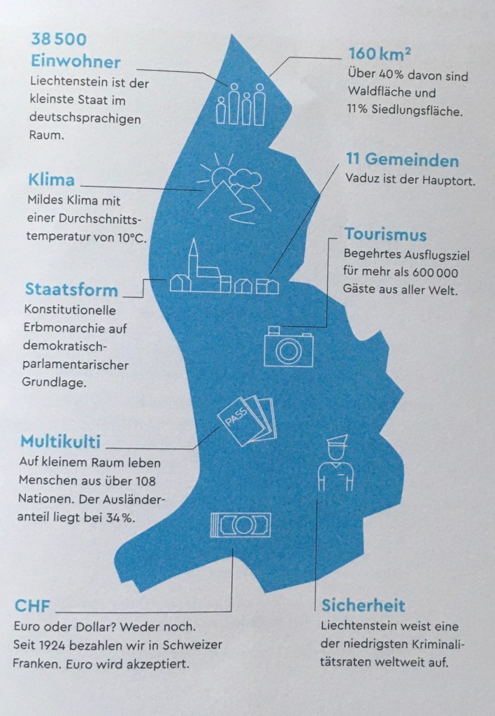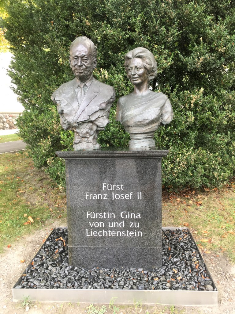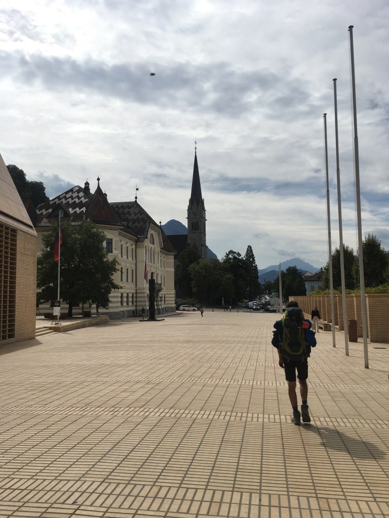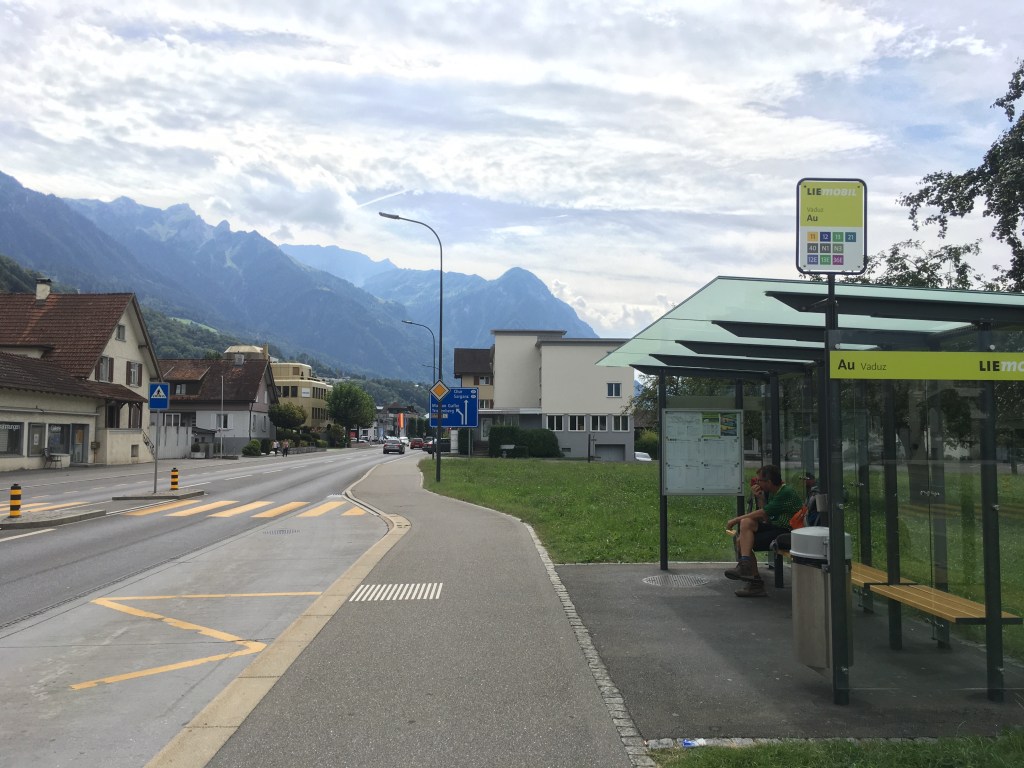 Vorbei am Schloss und weiter abwärts gelangen wir in die Hauptpromenade von Vaduz, wo alle Menschen schick angezogen an uns vorbei flanieren. Wir passen mit unseren Wandersachen und bepackt mit Rucksäcken nicht so recht ins Bild. Der Stadtlärm ist zunächst gewöhnungsbedürftig nach den ruhigen Bergtagen. Wir nehmen daher den schnellsten Weg zur Bushaltestelle und schießen im Vorbeigehen noch das Eine oder Andere Foto.