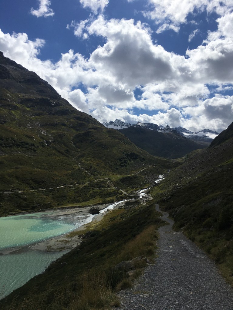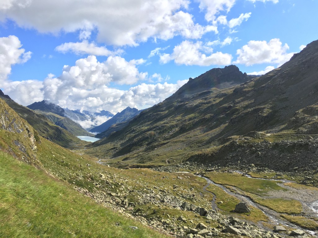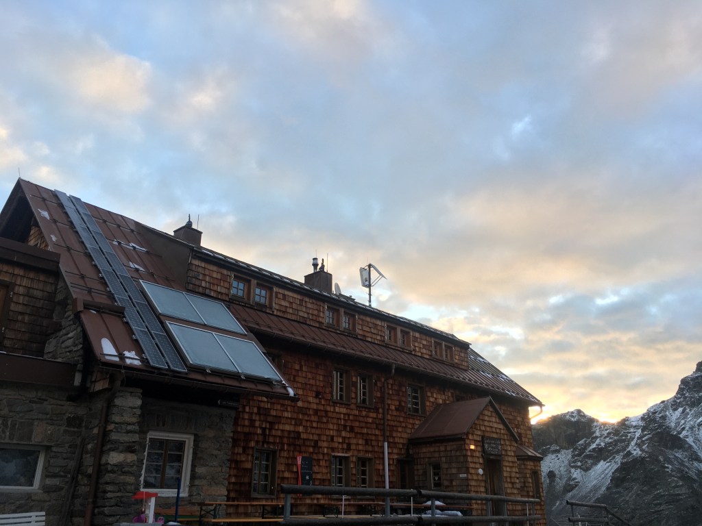 Gegen sechs Uhr wache ich auf und schaffe es nicht mehr, einzuschlafen. Beim Blick aus unserem Fenster kann ich den Vermunt-Stausee erblicken, von dem sich langsam die morgendliche Wolkendecke erhebt. Der Himmel sieht so aus, als ob es ein recht sonniger Tag werden könnte. Die Wolken werden von der Sonne angestrahlt und erscheinen in warmen Farbtönen. Noch ist es recht kalt auf 2500 Metern aber mit jeder Minute schiebt sich die Sonne höher und bringt etwas mehr Wärme und Helligkeit mit sich.